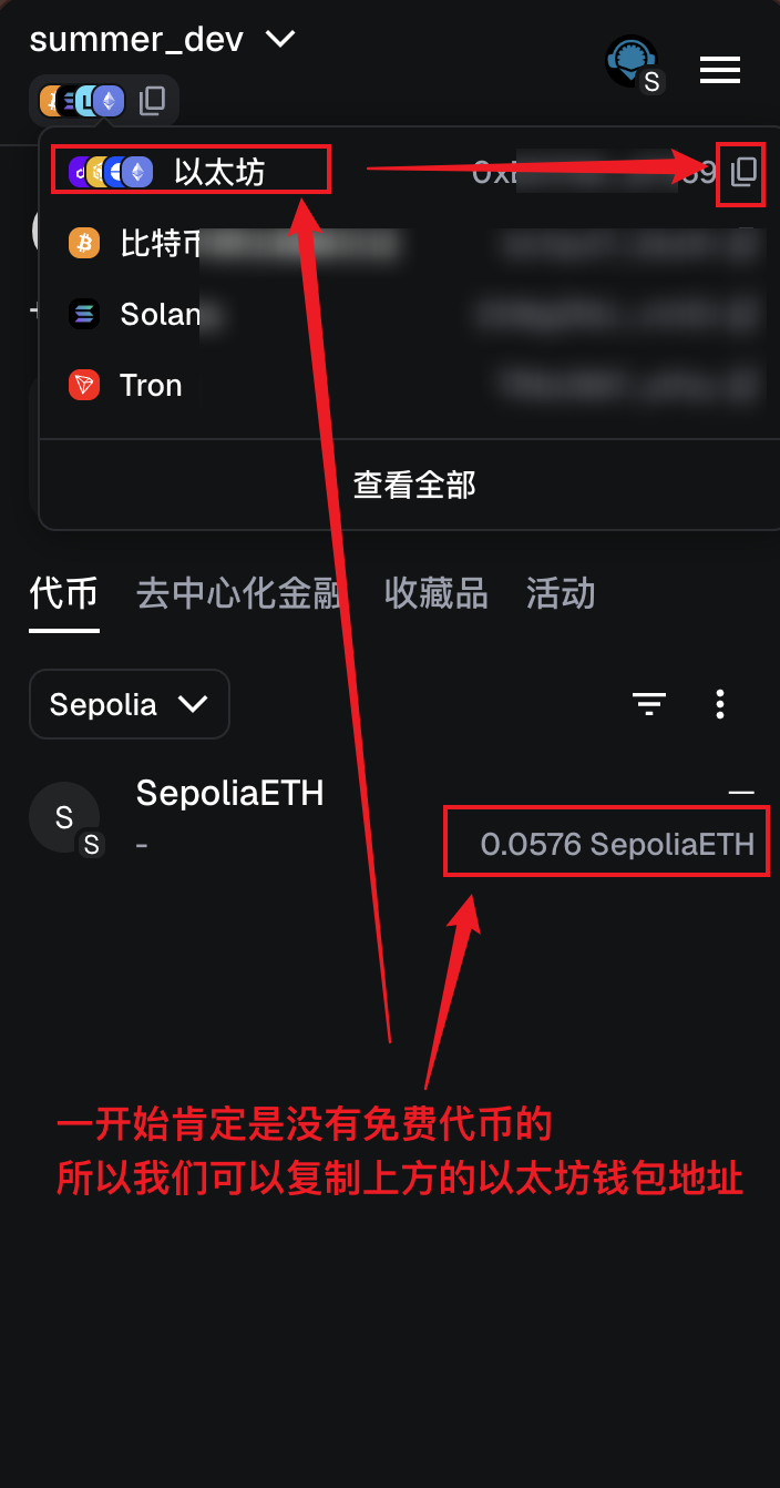 初次使用,SepoliaETH代币是0,可以免费领取